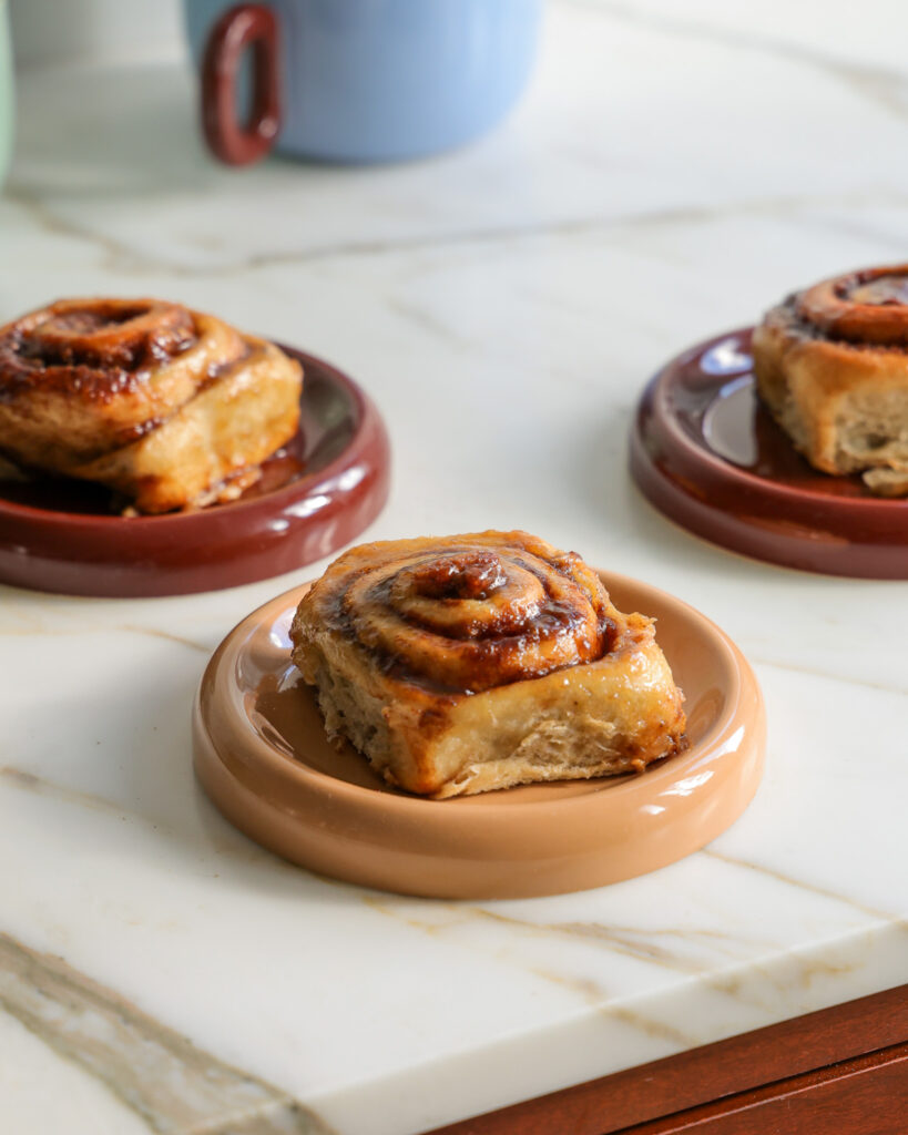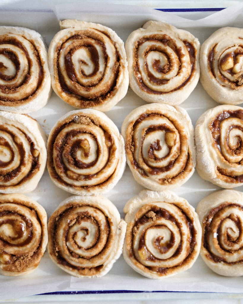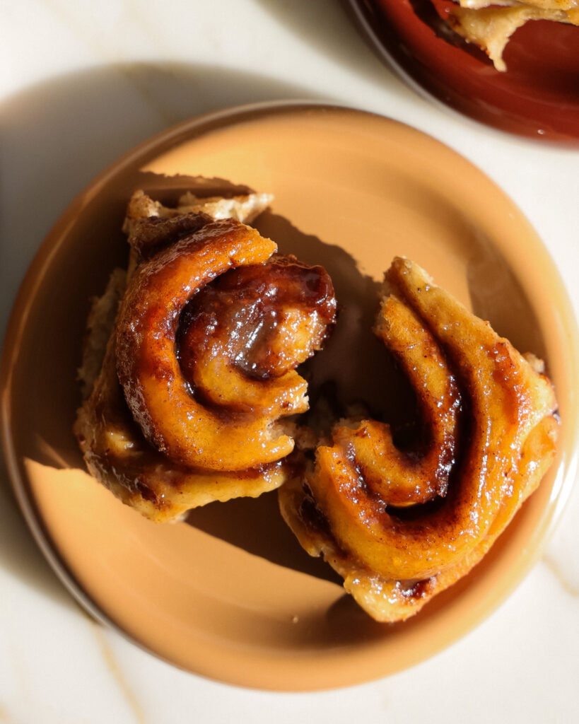 I made these in my tiny dorm room kitchen without a stand mixer and boy was it a lot of work, but so incredibly worth it. I’ve been making the brown butter banana bread recipe for years, and the combination of banana bread and cinnamon rolls is everything I could have ever dreamed of and more.
