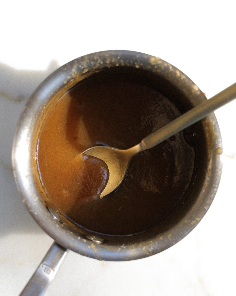 The result is a glossy, pourable caramel that thickens slightly as it cools and sinks beautifully into the warm rolls.