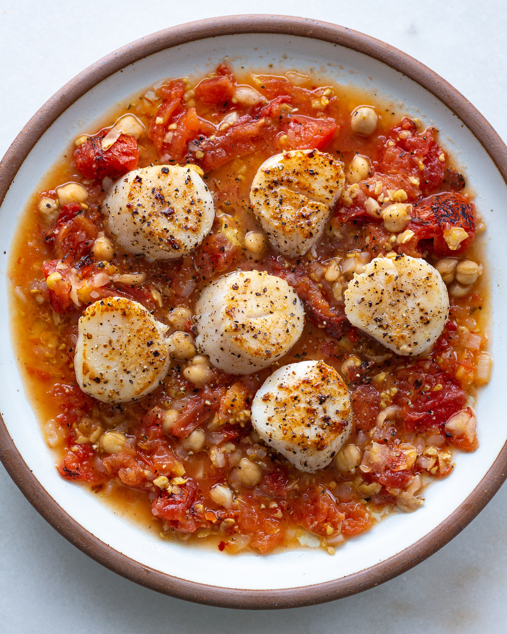 Scallops on Roasted Tomato Chickpeas