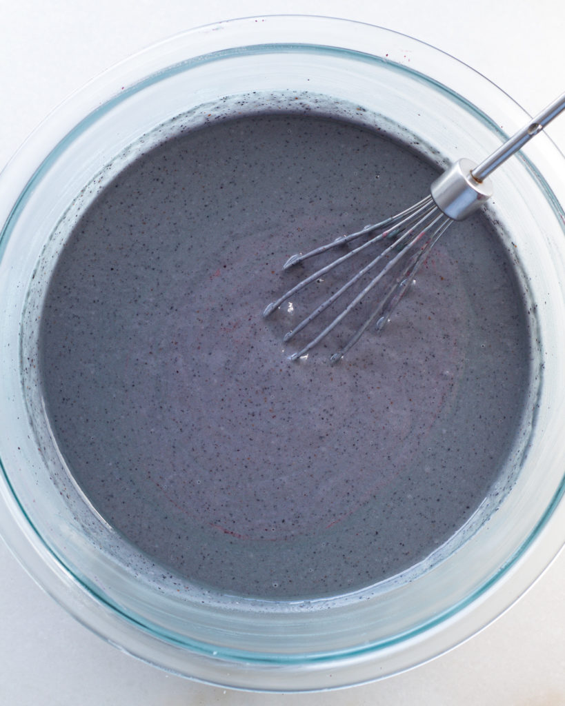 • Either on the stovetop or in the microwave, heat up the frozen blueberries on low until they are thawed and jammy. Let them cool, then add all the berries and their juices to a blender. Blend until fully puréed.