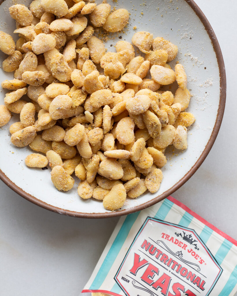 - Sprinkle over the nutritional yeast, flour, spices and a few hefty pinches of kosher salt, about 1/2 teaspoon at least.