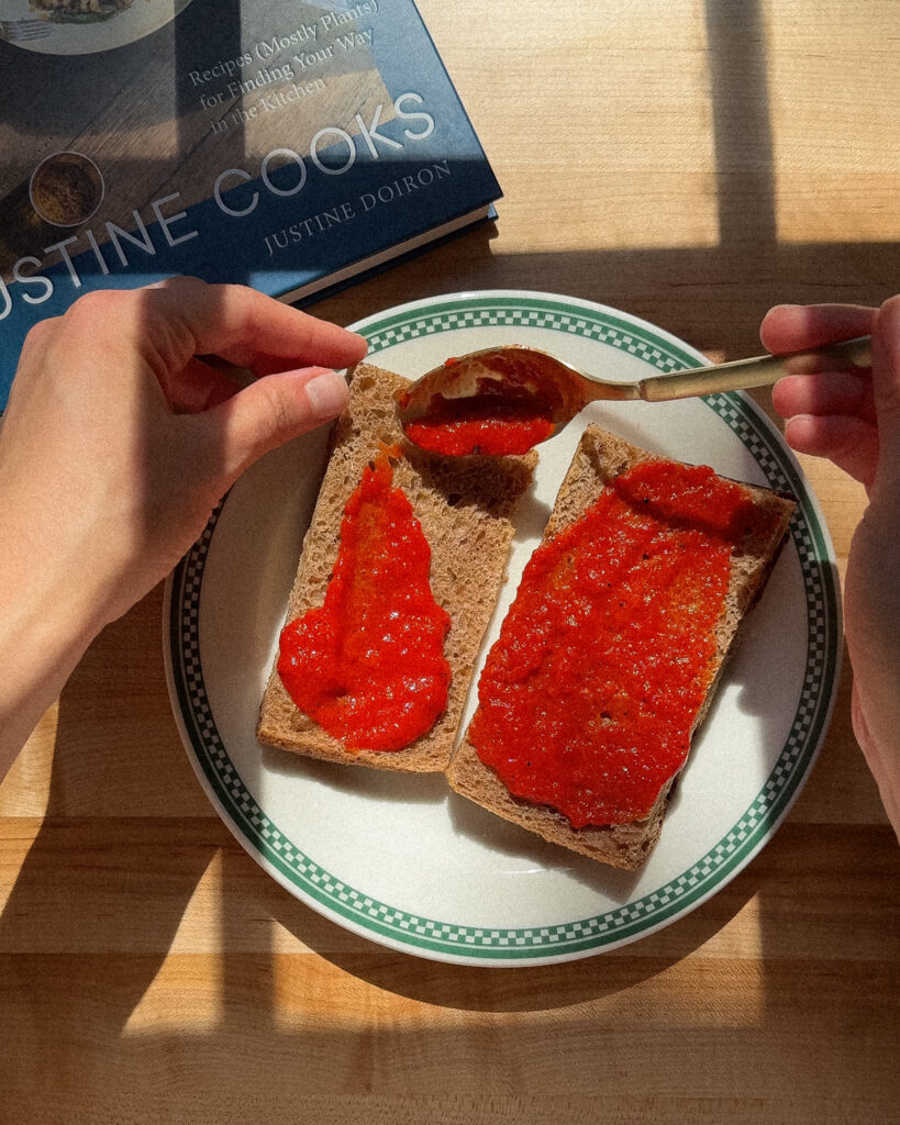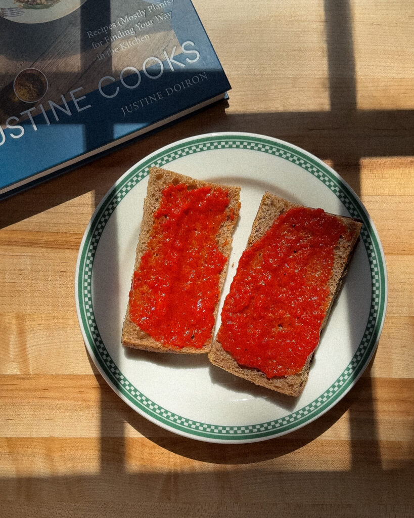 This is one of my favs for Justine Cooks! It is simple but impressive and it’s my go to for hosting a low key lunch or brunch. My next endeavor is to host a “toast party” and make all of the toasts from the book.