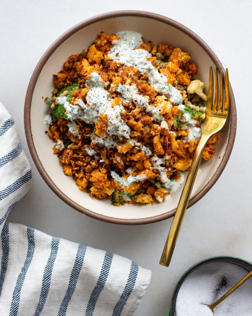 And that’s everything for this buffalo cauliflower bowl!