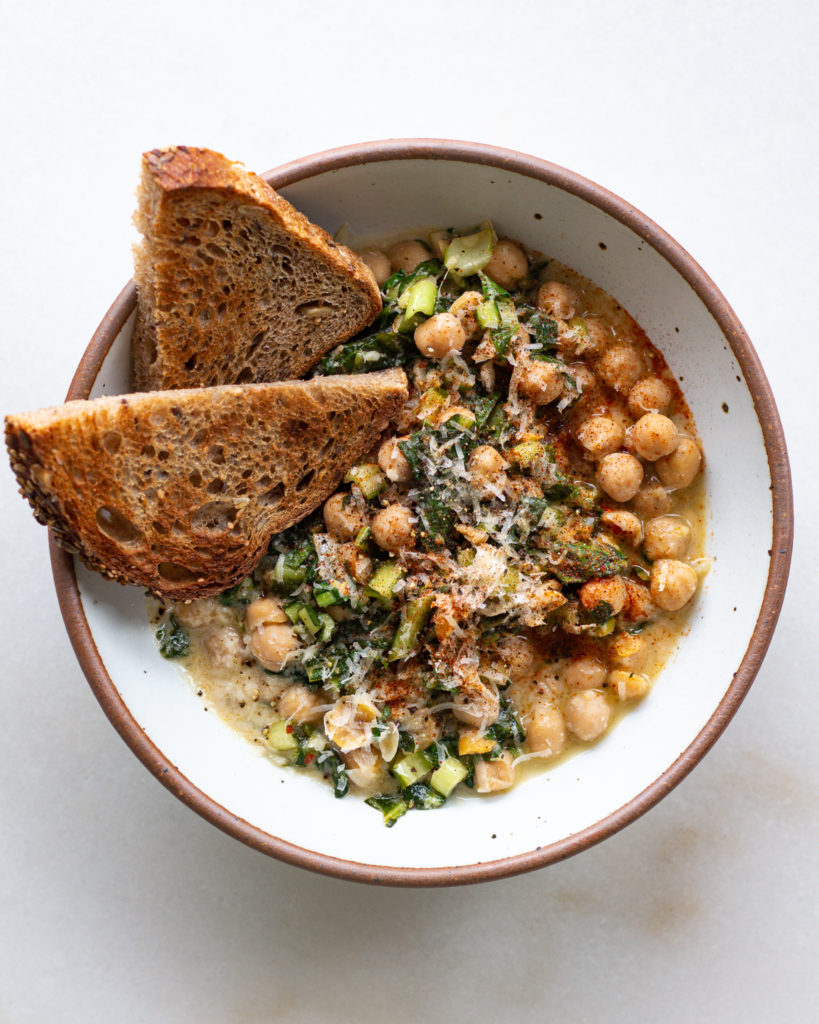 I just got back from vacation (itineraries coming soon!) and all I wanted was something filling, warm, simple and comforting – and these creamy tahini chickpeas with bitter greens immediately came to mind. The ingredients are simple, which feels needed, especially with grocery store prices going up. And what I love is this bowl covers all the major food groups – it’s a complete dinner that you can adjust, tweak, bulk up or simplify down to fit your needs.