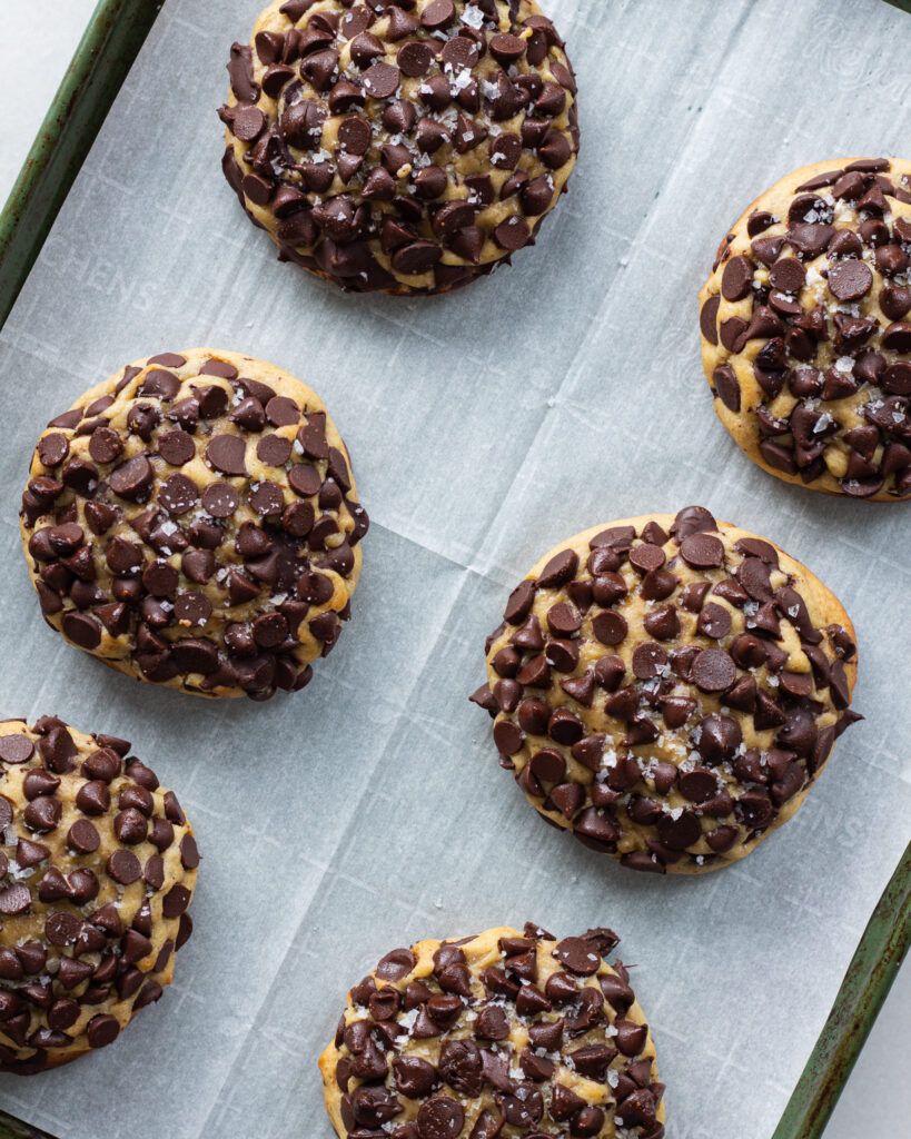 Placing the cookies straight from the freezer into baking also allows the chips to stay unmelted for as long as possible, which you’ll notice in the section above, is a key element to a Gideon’s cookie.