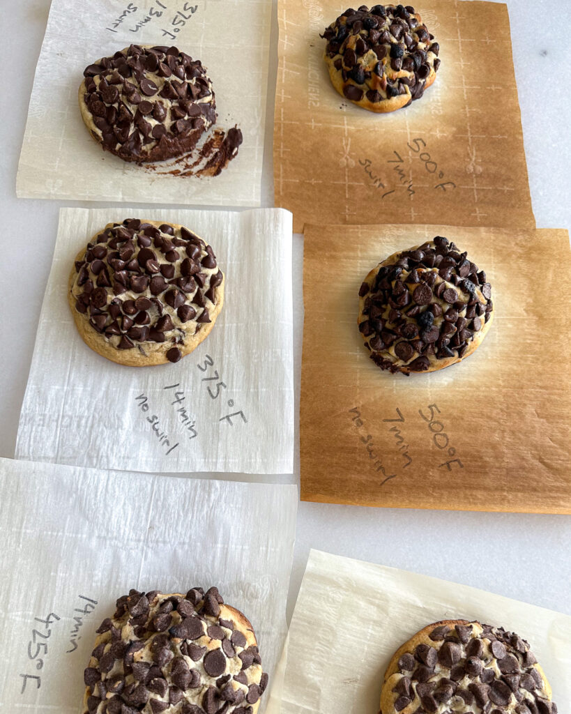 As you can see, 500 degrees scorched the chocolate and didn’t allow the cookie to bake fully.