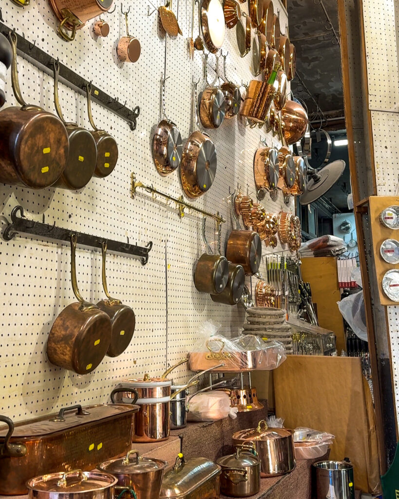 Another mile-or-so walk away is this home goods store, which is perfectly rustic and filled with nearly every kitchen tool imaginable. I could have spent ours here, but I had to resist. They specialize in copper cookery tools, but definitely pop down into the basement to see more restaurant wares and Staub pots than you could ever dream of.