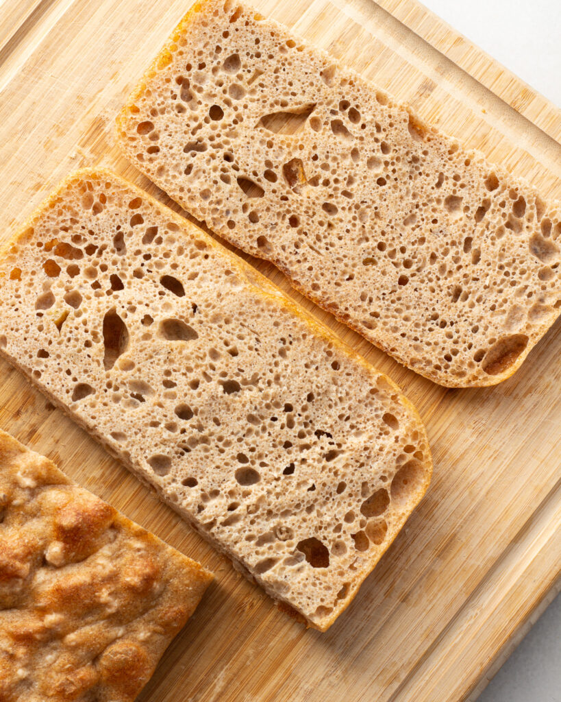 - 1/2 serving whole wheat focaccia recipe, cut into two long pieces