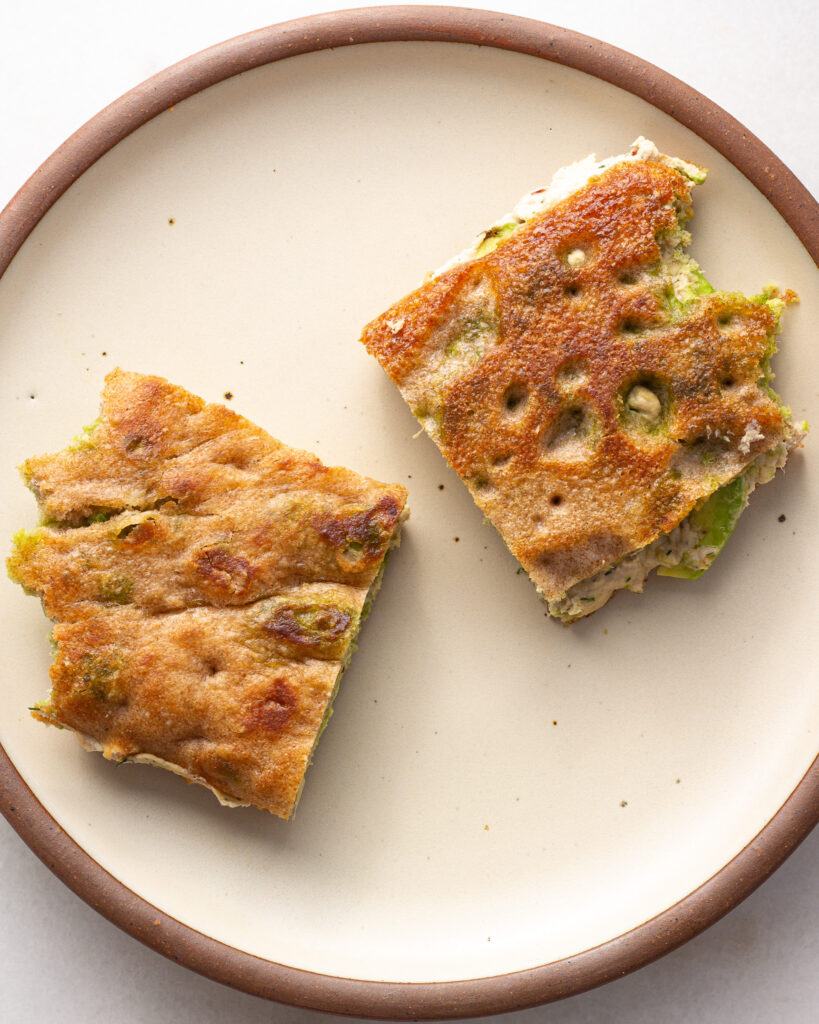 - 1/2 serving whole wheat focaccia, recipe linked here