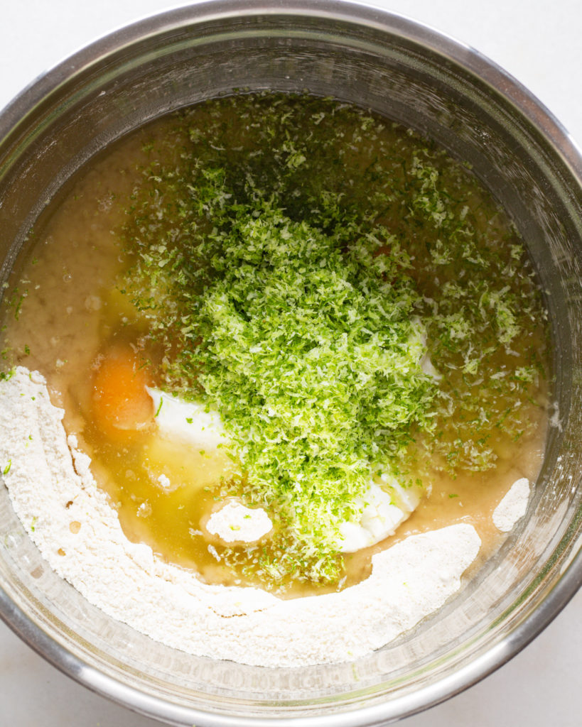 - Add in the 3 tbsp of lime juice and the zest from one lime. Use a spatula to swirl this into the batter until evenly mixed.