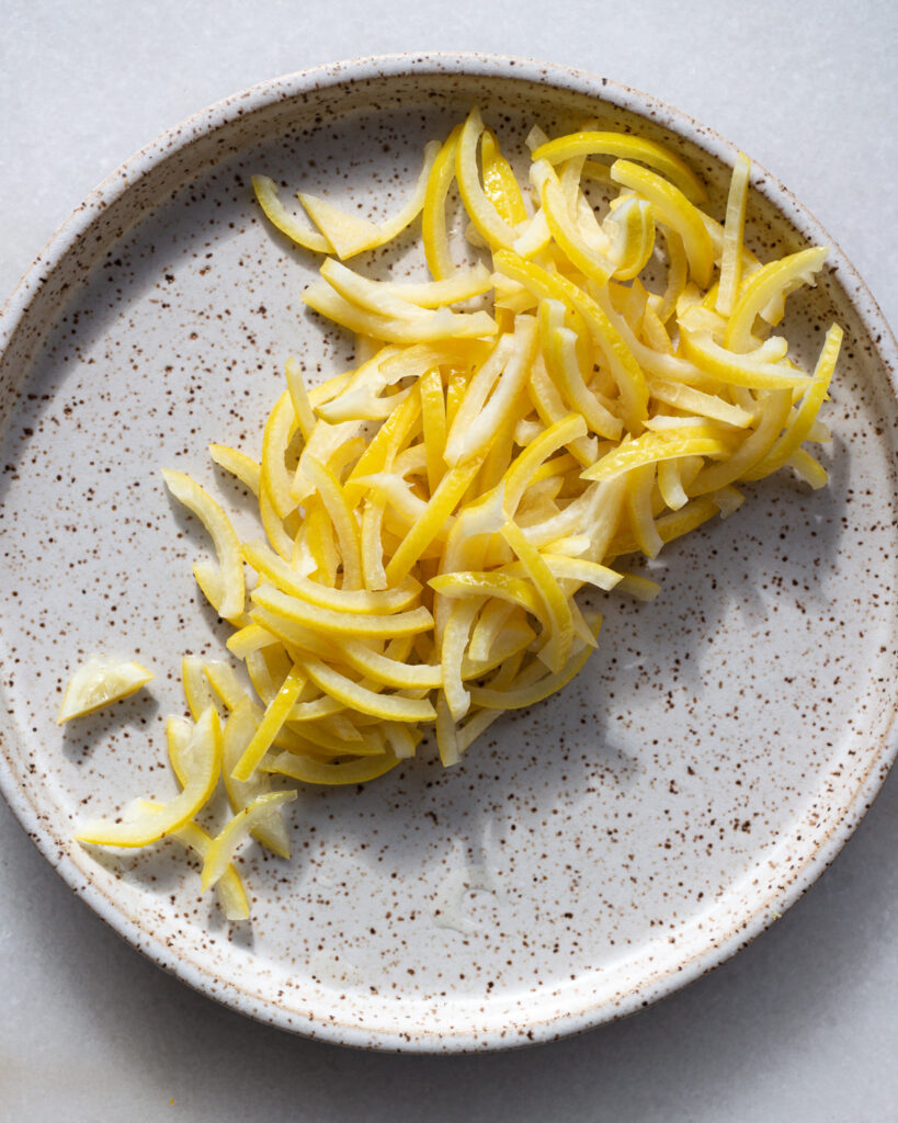 Lemon and orange peels are a key part of what makes this recipe so pretty, and the process might take a bit of time, but it’s very easy and very rewarding.