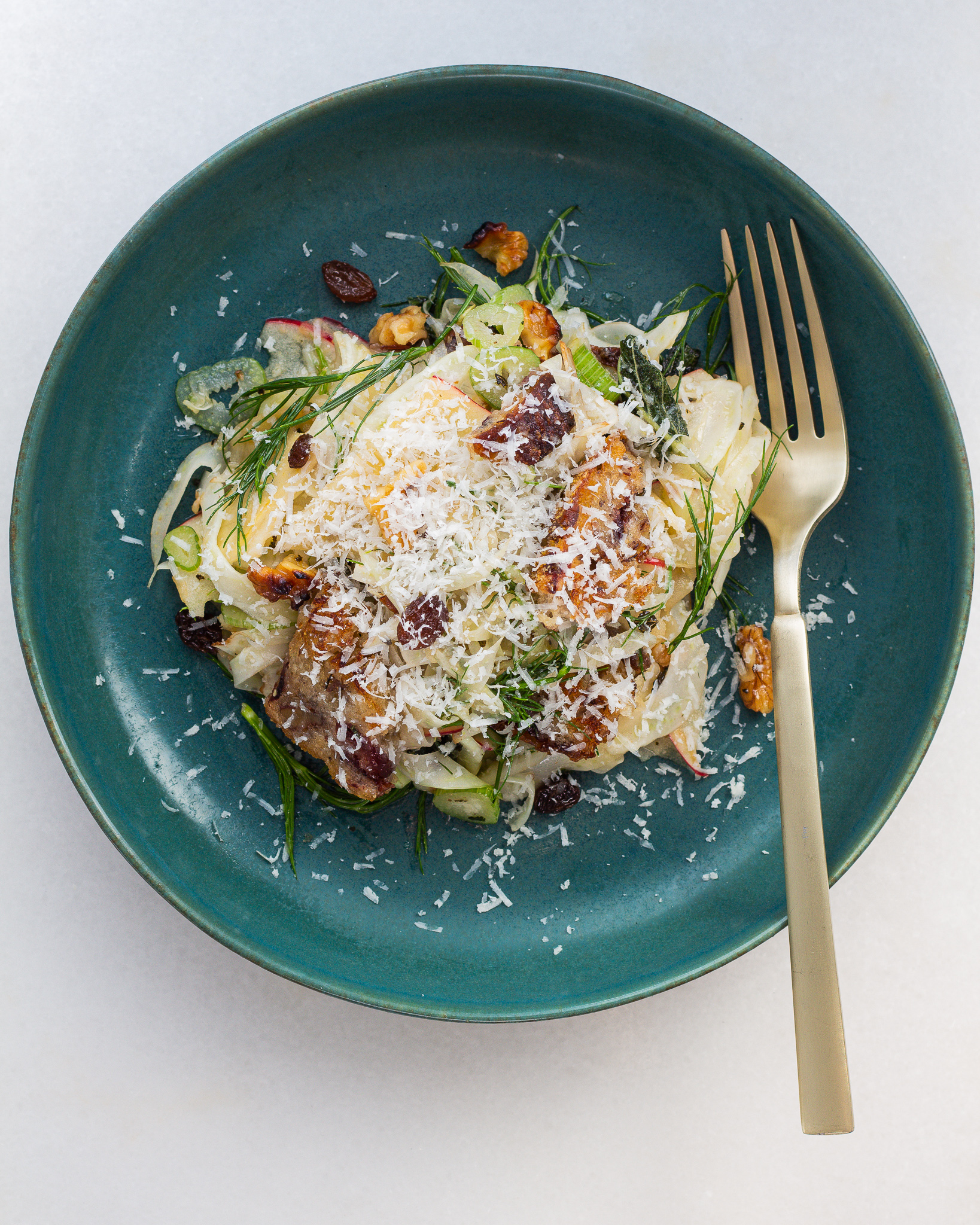 Fennel Apple Salad with Torn Bread Crumbs and Fried Sage