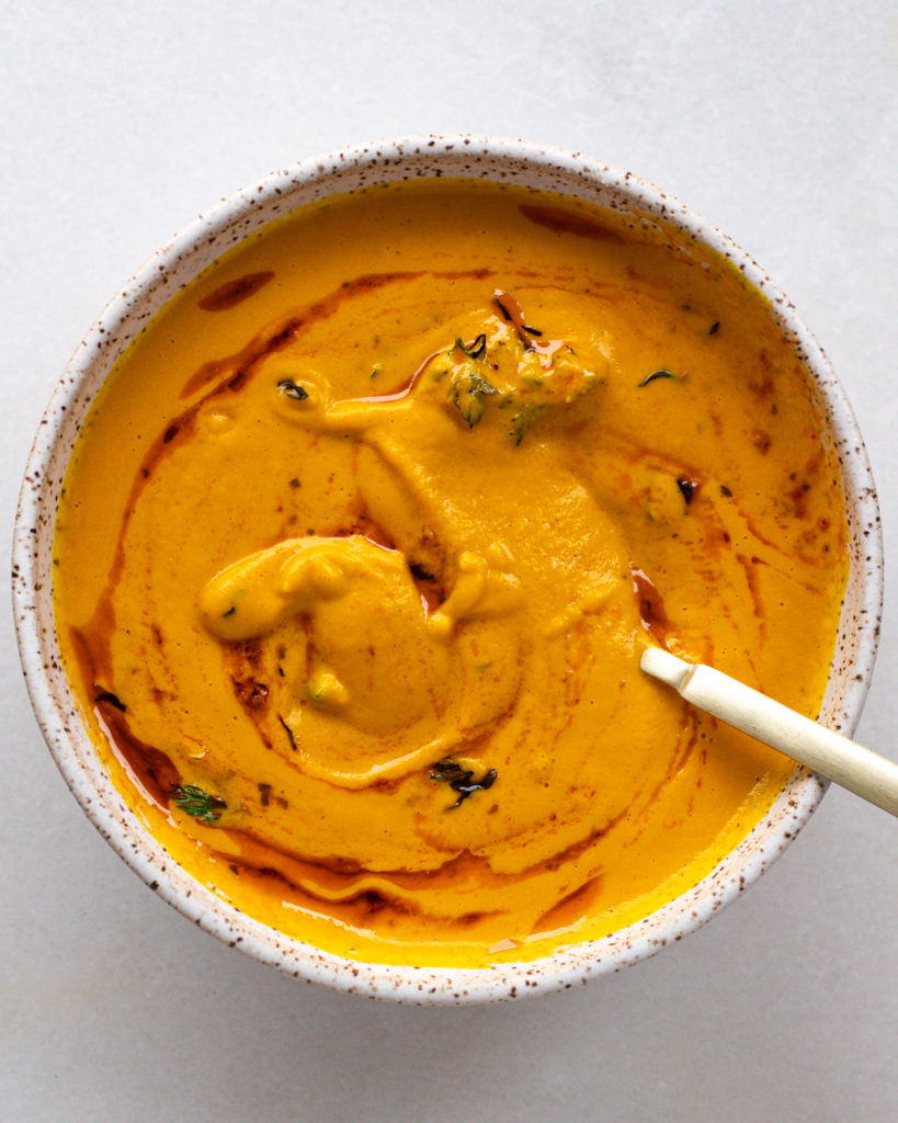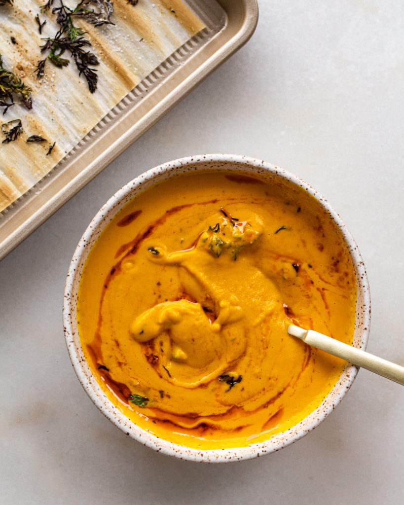 The instructions seem long, but that’s all due to the timing and specifics of this recipe. Really you just coat in spices and olive oil, roast, blend and serve! But of course, if you are looking for the nitty-gritty, I always have you covered: